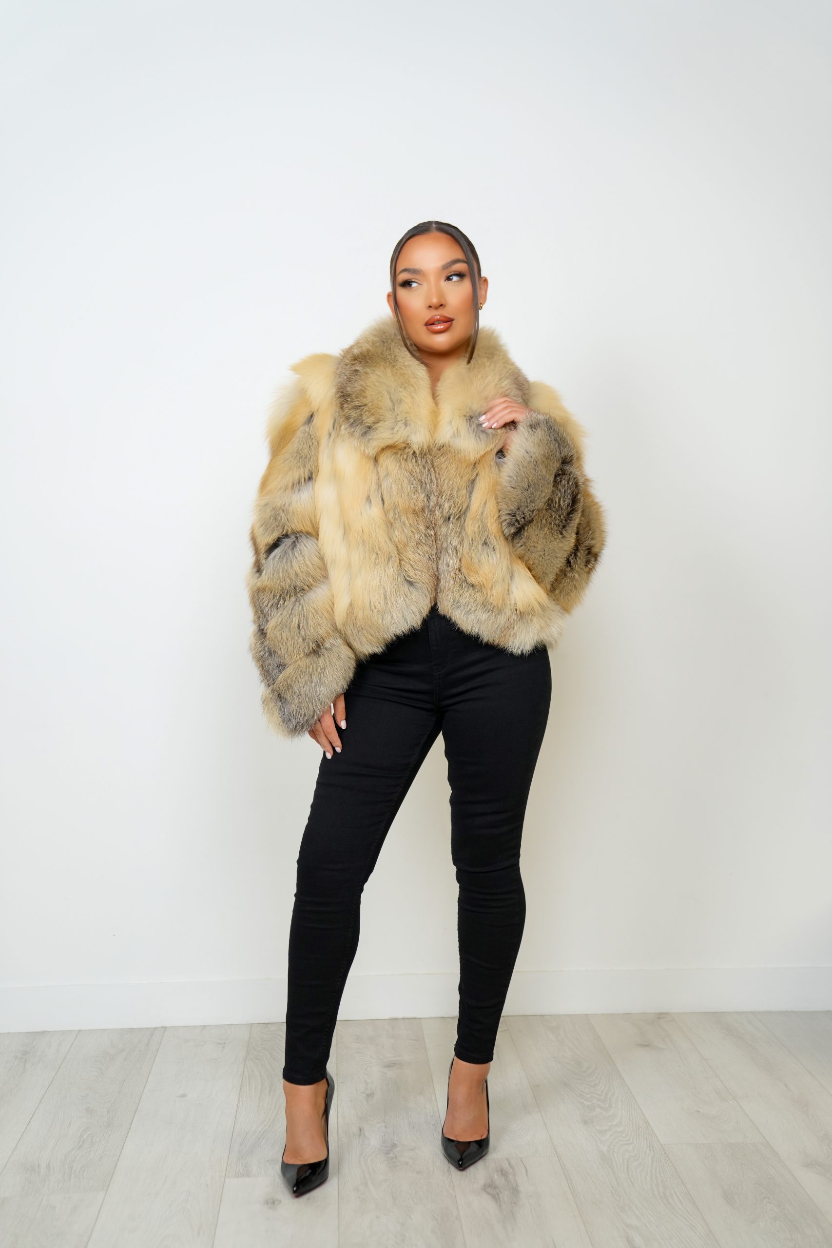 Elevate your winter wardrobe with our Classic Fox Fur Short Coat. Handcrafted from premium fox fur, this piece boasts a luxurious texture and rich natural hues that speak to its heritage. Featuring a unique V-style sleeves, the Golden Fox Jacket delivers a modern silhouette while providing timeless sophistication. A timeless essential that melds tradition with contemporary allure.